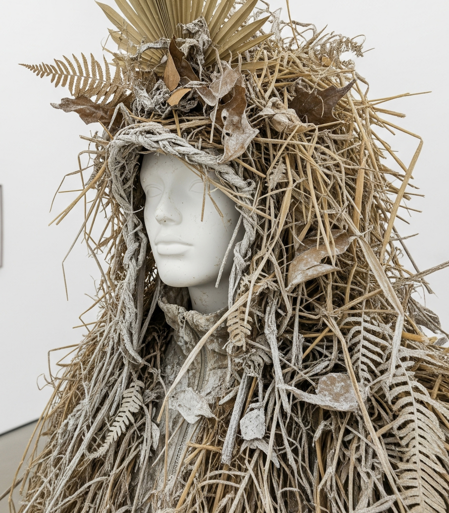 I’m in love with natural materials like straw, wheat, dried leaves, and corn husks. They feel real, earthy, and full of history. These are the leftover parts of a harvest…they’ve been used for centuries to make outfits, art, and ritual objects. In general, I like using ‘non-art’ materials like plants, mechanic rags, thick papers like ‘chip board’ and ‘builder’s paper’ (from hardware stores).
